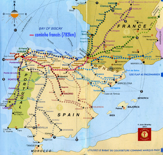 Abaixo um mapa com as rotas do Caminho de Santiago de Compostela: