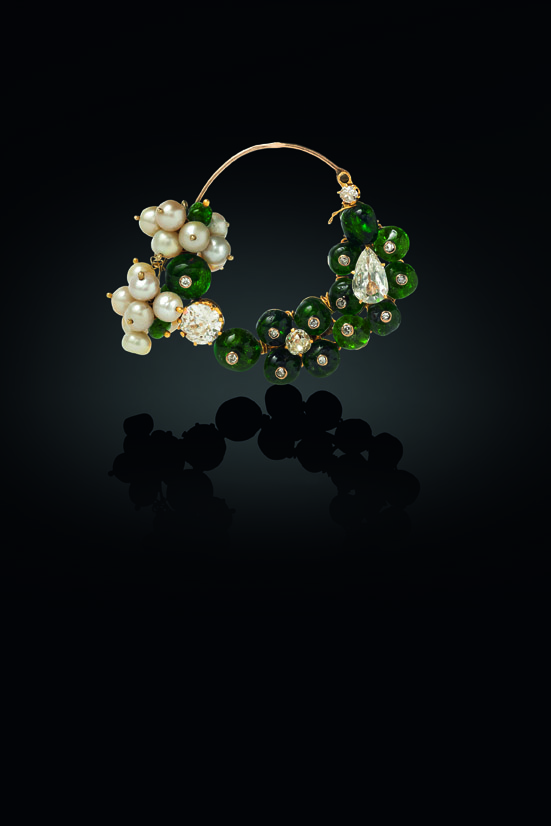 Aigrette, encontrado na Índia entre 1850-1900 e montado em Paris no ano de 1910. Ornamento Nez, Índia Ocidental, 1925-1950. © The Al Thani Collection 2013. Tous droits réservés. Photo Prudence Cuming Associates Ltd