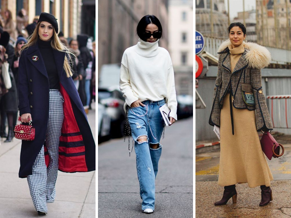 Pés, mãos e pescoço sofrem com o vento gelado. Para evitar o desconforto, o ideal é abusar dos acessórios para complementar a produção. As luvas com tecnologia touch screen são mais recomendadas para o dia a dia, já que é praticamente impossível ficar sem celular. Blusas de gola rolê não podem faltar no armário das francesas. Além de deixar o pescoço quentinho, as versões oversized ou com proposta retrô chic fazem sucesso no street style das temporadas de moda.