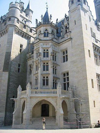Poderoso castelo que foi construído por Luis de Orléans no século XIV, mas em 1815 não era mais que uma ruina comprada por Napoleão I. Mas foi Napoleão III que em 1857 chamou o renomado arquiteto Viollet-leDuc para restaurá-lo e em 1884 Pierrefonds ressurgiu como residência imperial. O exterior – com fosso, ponte levadiça, torres e caminho duplo para sentinela- é uma bela reconstrução da arquitetura medieval militar.
